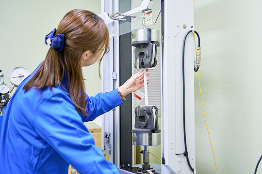 新商品開発の段階から品質管理部が参画し、試作品の物性試験や色彩測定、強度検査など多角的な評価を実施しています。お客様に安心してご使用いただける製品をお届けするため、原料の受入検査から製造工程、最終製品まで、一貫した品質管理を徹底しています。