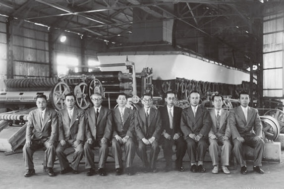 旭鉄工所(現旭マシナリー)により網巾72インチ(1764mm)円網多筒式 1号抄紙機を新規設置。稲わらを原料に板紙製造開始