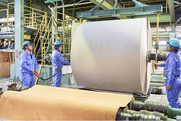 抄紙機は24時間稼働しているので、常に板紙が生産され続けています。