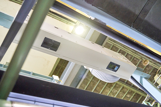 高解像度カメラで製品両面の微細な異物等の欠陥を検知します。異物が検知された紙は自動選別されます。