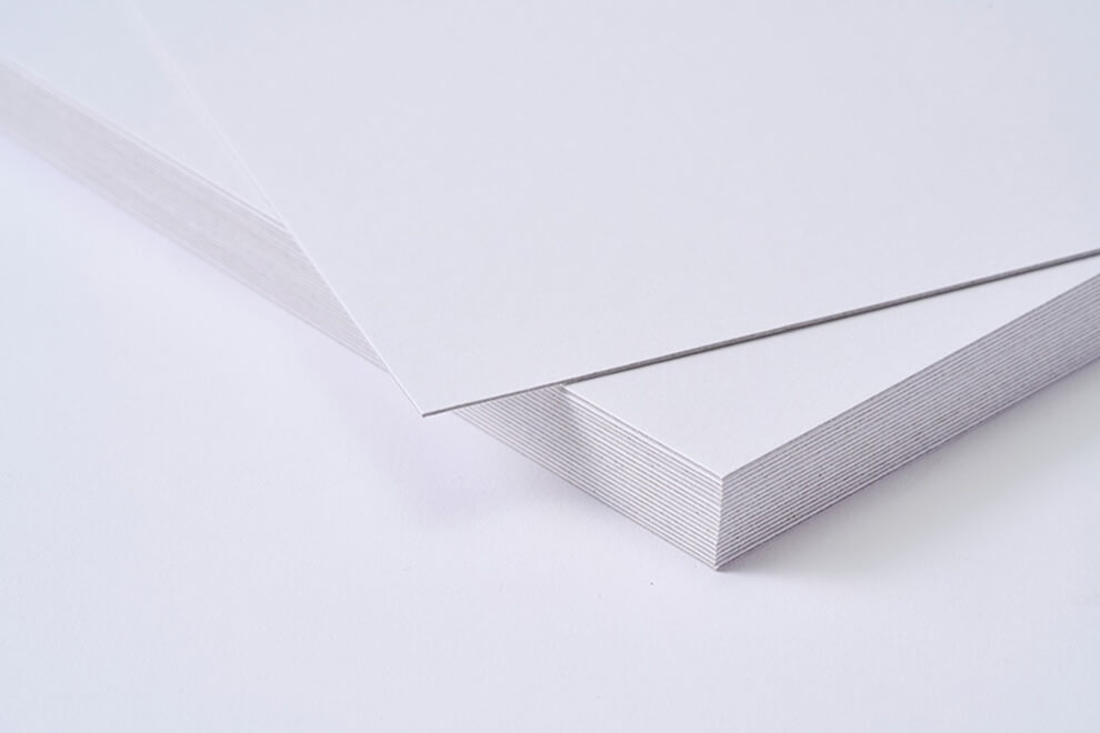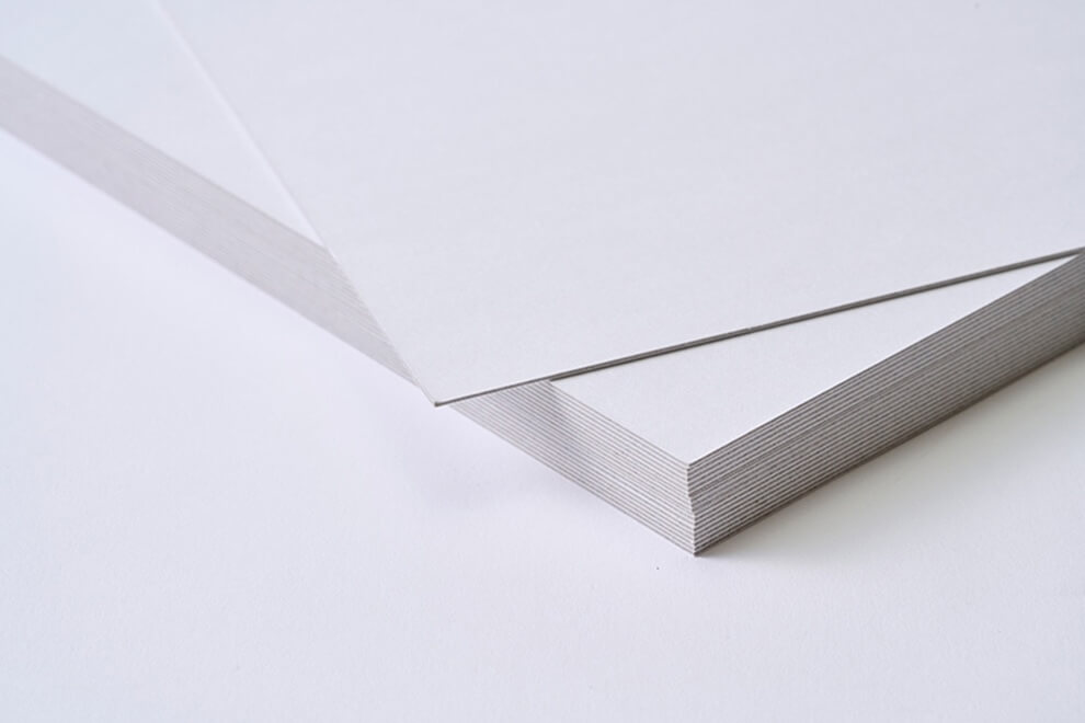 表面・裏面の両面に上白古紙原料を抄き込んだ、両面白色のプレミアムな板紙です。