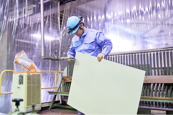 平板にカットする製造方法から、ロール状に巻き取る製造方法へ切替えします。