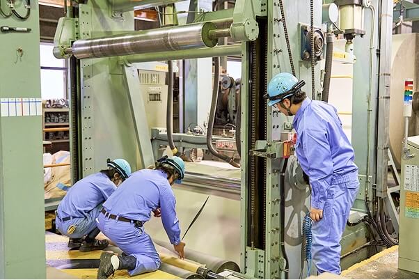 寸法変更後は全作業員が寸法確認を行います。この寸法替作業は、多い時には30回以上も行う日があります。