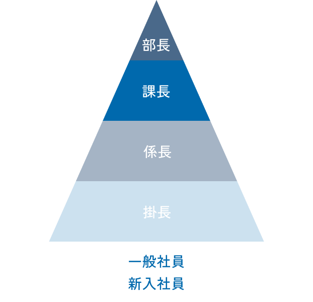 加工製品部では、個人作業も多いため、原質部や抄紙部のようなチーム編成のための1〜4番手などの職位等級はなく役職のみとなり、個々の力量に応じてできることを伸ばしていく指導方法、業務割当をしています。